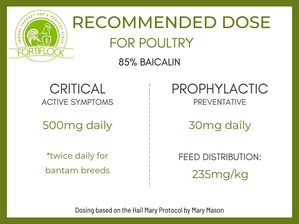 Fortiflock™ se agrega al alimento como un suplemento diario para mantener a los pollos saludables al apoyar un sistema inmunológico fuerte y promover un intestino saludable.* Para uso diario, contiene extracto de escutelaria china con 85 % de baicalina.