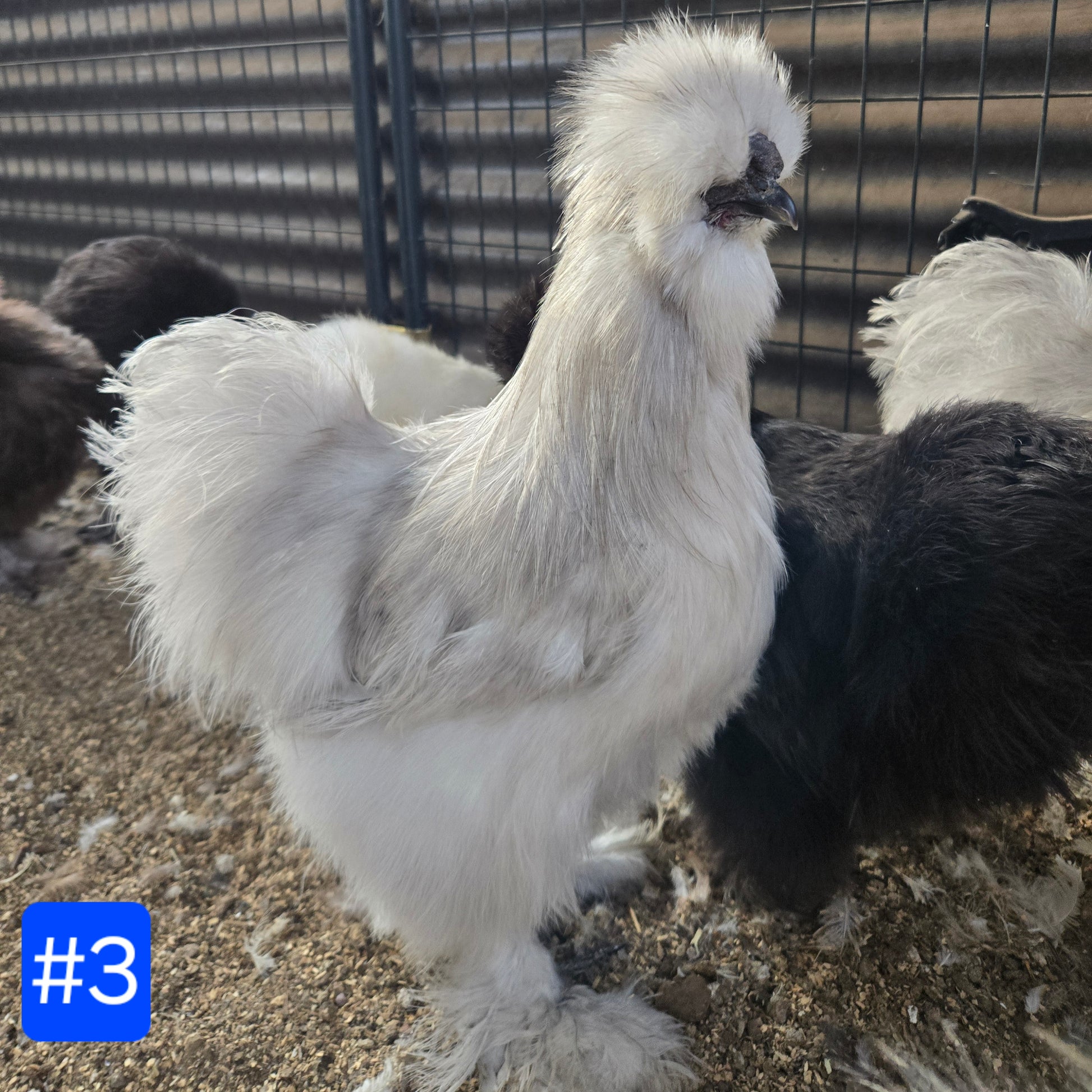 Ocasionalmente, tenemos Silkie adultos disponibles para retiro local o envío. Visite nuestra página de Facebook para consultar la disponibilidad.